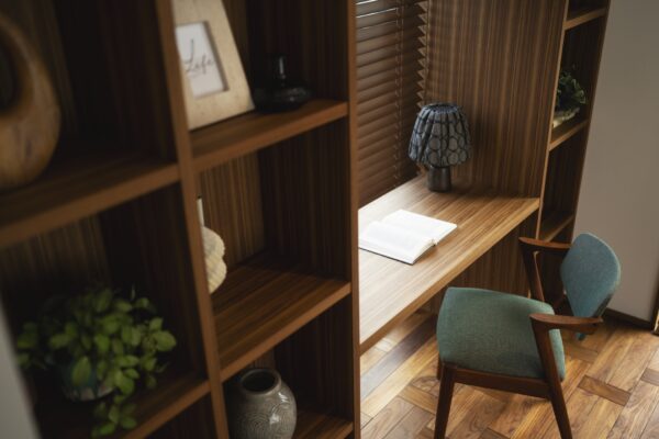 家具は、北欧の落ち着いた時間の流れを感じられるよう、ヴィンテージ家具をメインにセレクト。使い込まれた木の表情や、時を重ねた素材感が、空間にやさしい奥行きと心地よさをもたらします。